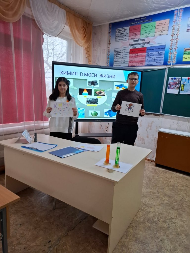 Химия онкүндігі аясында. 10 сынып оқушысы Понарина Диана "бағдаршам" тәжірибесін өткізді. 7-сынып оқушылары зерттеді жануы шамдар. "Біздің өміріміздегі Химия" сурет байқауы.
