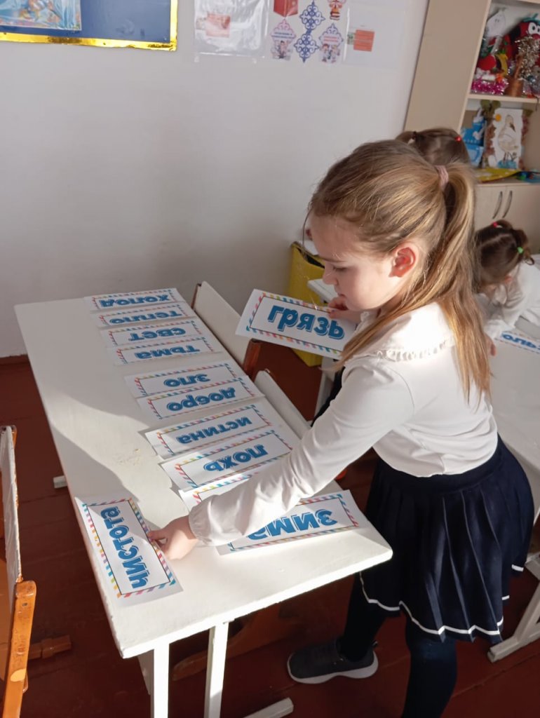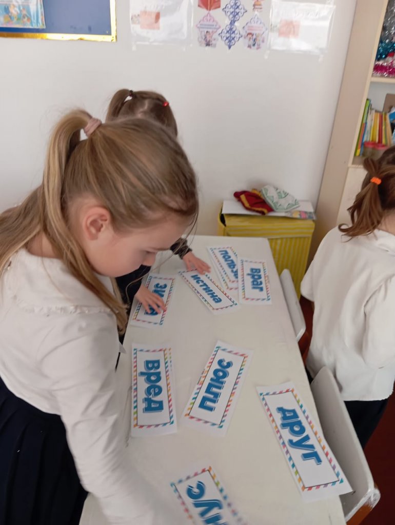 Орыс тілі сабағында ойын арқылы 2-сынып оқушылары мағынасы жағынан жақын "синонимдер" және мағынасы жағынан қарама-қарсы "антонимдер"сөздерін анықтады Мұғалім: Заволоко. О. А